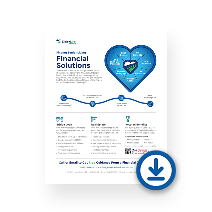 ElderLife is here to help provide the financial resources you need to speed up and increase occupancy rates! Similar to a college financial aid office, ElderLife will help your families explore resources to help them pay for the cost of senior living. Connect a family for a FREE financial consultation that includes: