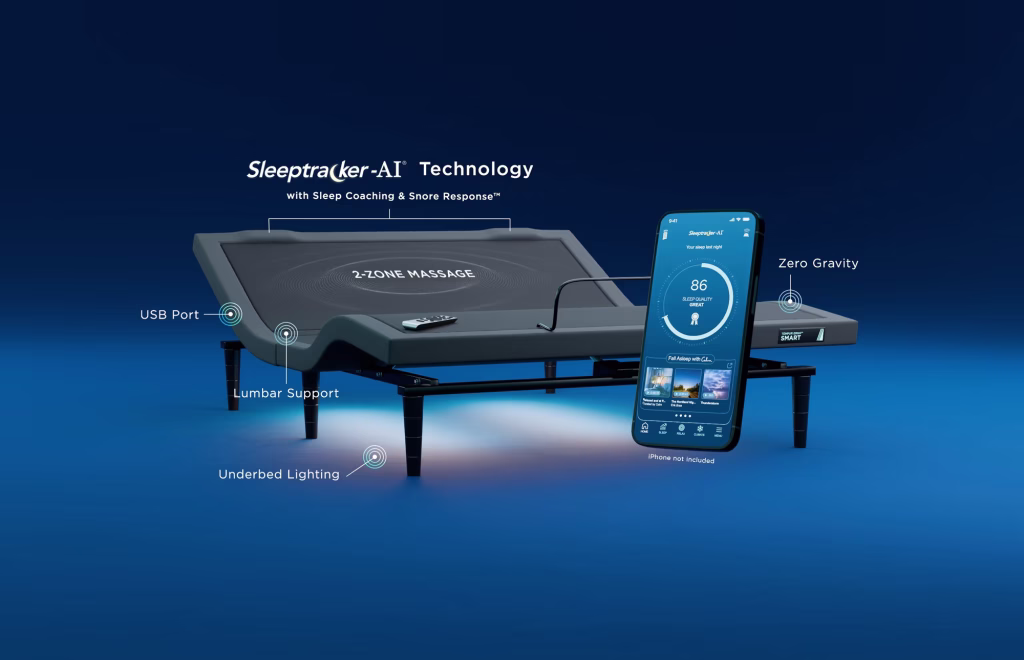 Key Features: Sleep tracking with app coaching, automatic snore response, advanced three-level massage, multiple positioning presets, USB ports, Sleeptracker-AI® technology