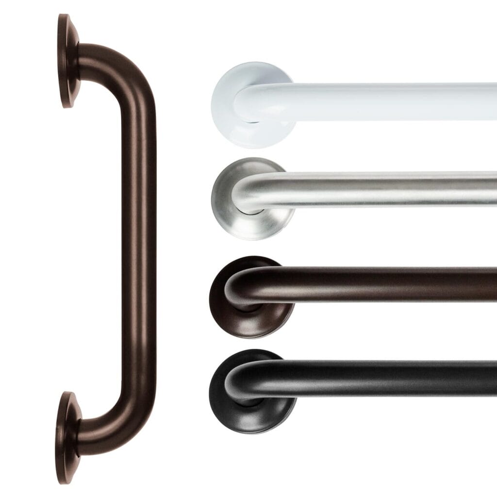 Most quality grab bars are stainless steel, which resists rust and is easy to clean. Finishes now range from classic brushed stainless to black, brass, and designer styles that match modern faucets and hardware. Decorative bars are no longer just for looks—many meet ADA standards while still blending into upgraded bathrooms.