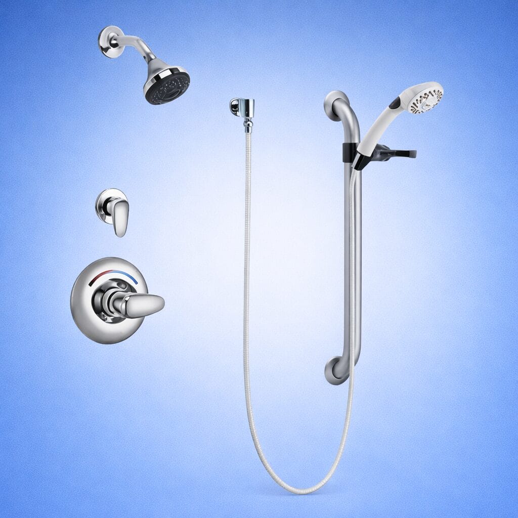 We also wanted this list to be practical. Not everyone needs a full shower system, and not every bathroom can support a remodel. So the roundup includes a straightforward ADA-oriented handheld, a commercial-grade grab-bar trim kit, a comfort-focused dual rainshower/handshower combo, and a low-cost arm extension that can improve reach and positioning without changing the showerhead itself.