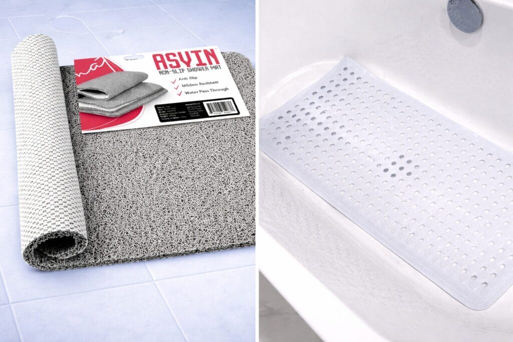 Compared to the Gorilla Grip, the Asvin generally won’t feel as vacuum-sealed to the tub floor—but it earns its place because it works where suction mats frequently fail.