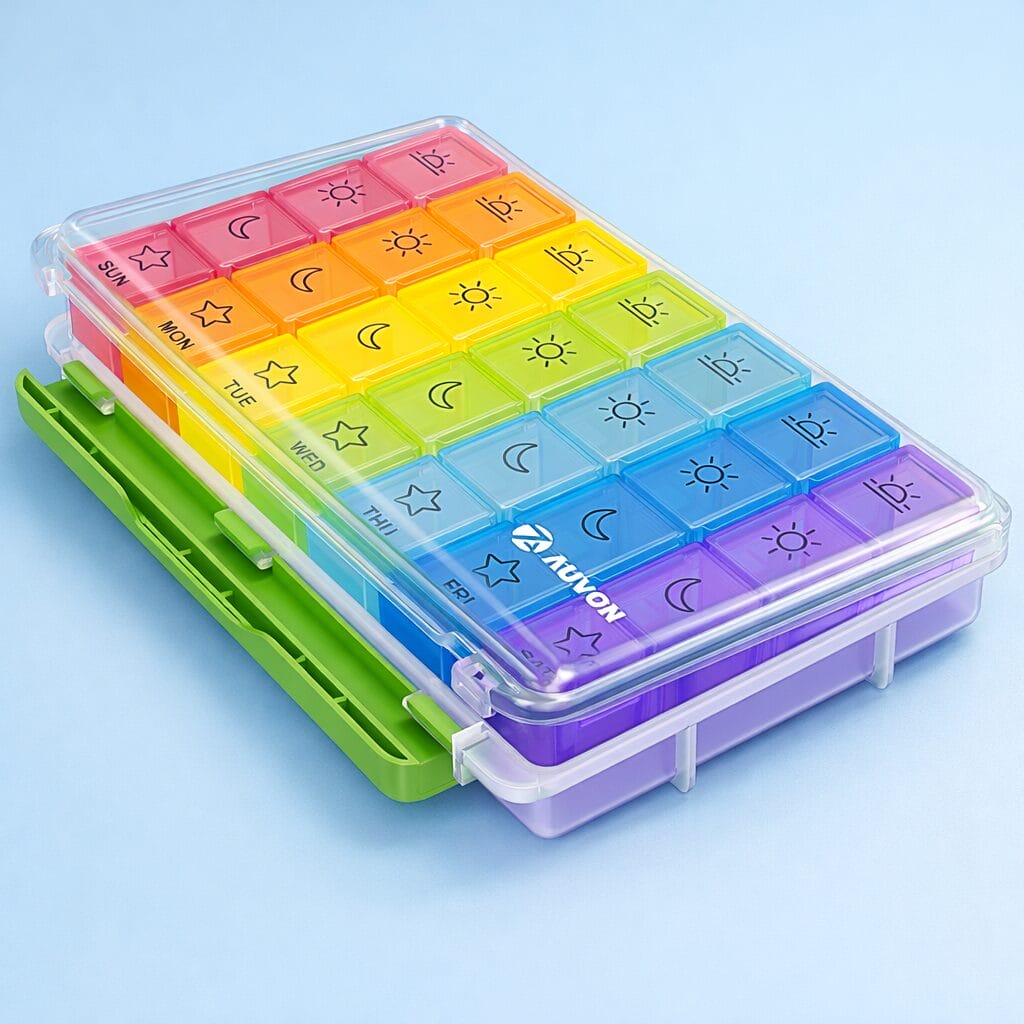 For most people, the Auvon iMedassist Moisture-Proof Weekly Organizer is the best all-around choice thanks to its combination of capacity, durability, and flexible daily compartments. If ease of opening is the top priority, the Auvon Spring Open model is hard to beat. And for those with large pill regimens, the Bexeen Extra Large Organizer offers unmatched space and practicality.